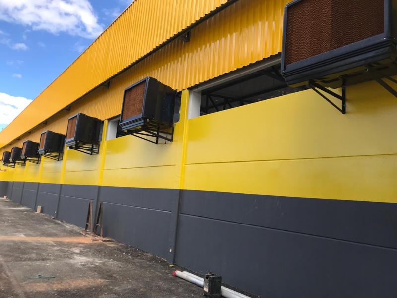 O climatizador industrial evaporativo torna o local mais confortável tanto em termos térmicos quanto de barulho, pois tem um funcionamento silencioso, qualidade atribuída à eficiência do motor e ventilador aplicados.